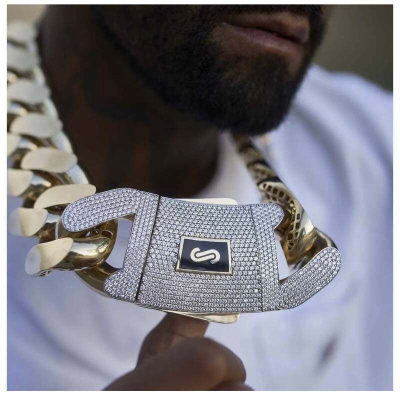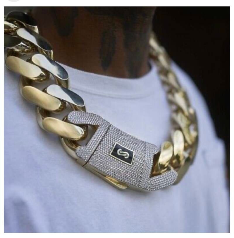 Miami Cuban Chain Soild 18KT Yellow Gold Wide 52 mm Set in Diamonds with Gold Weight 5KG $399,000 USD Bracelet $125,000 USD