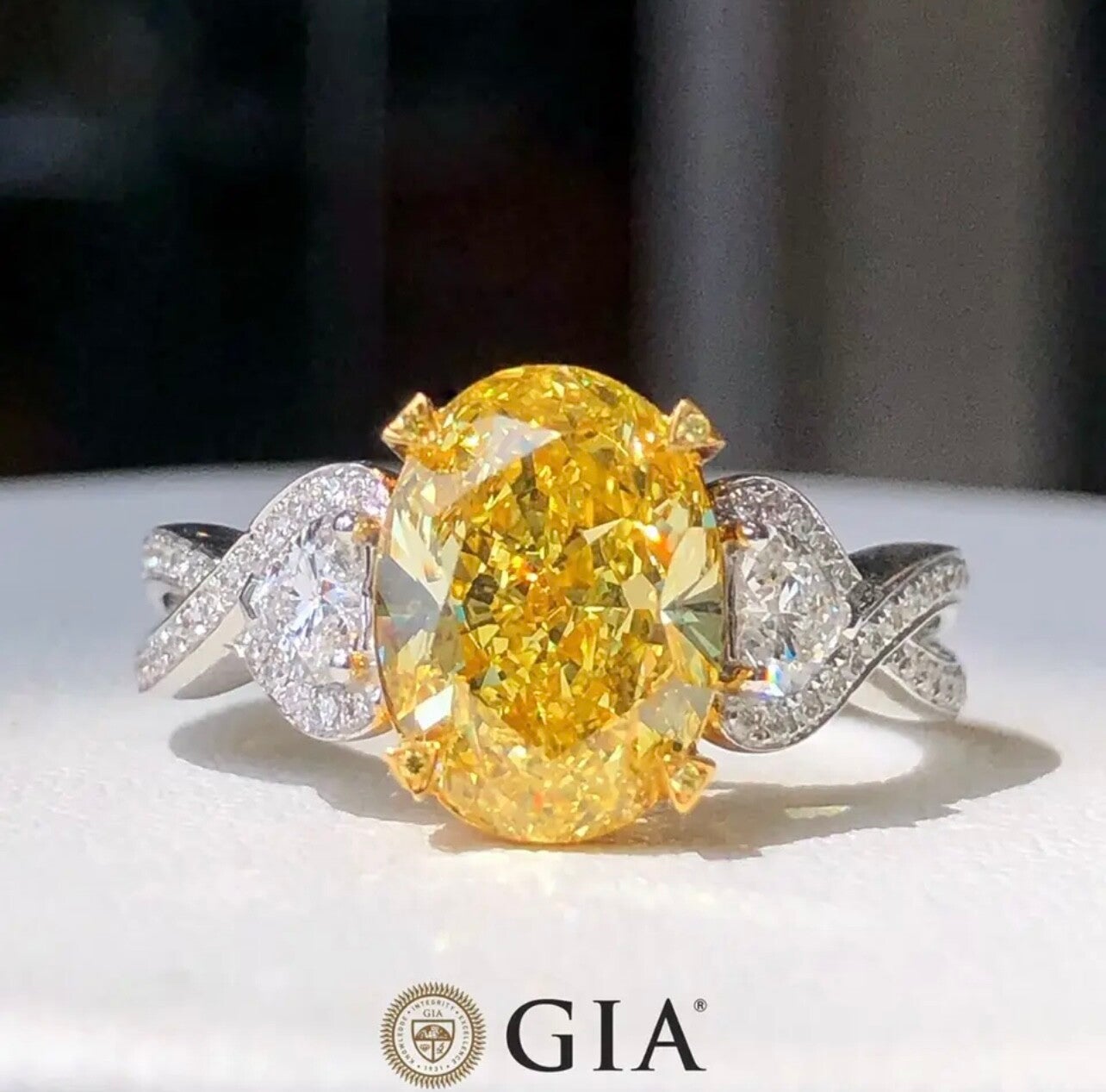 10.00 Carat Argyle Fancy Vivid Yellow Oval Cut Diamond Ring Flawless Diamond GIA Dossier $2,500,000 USD