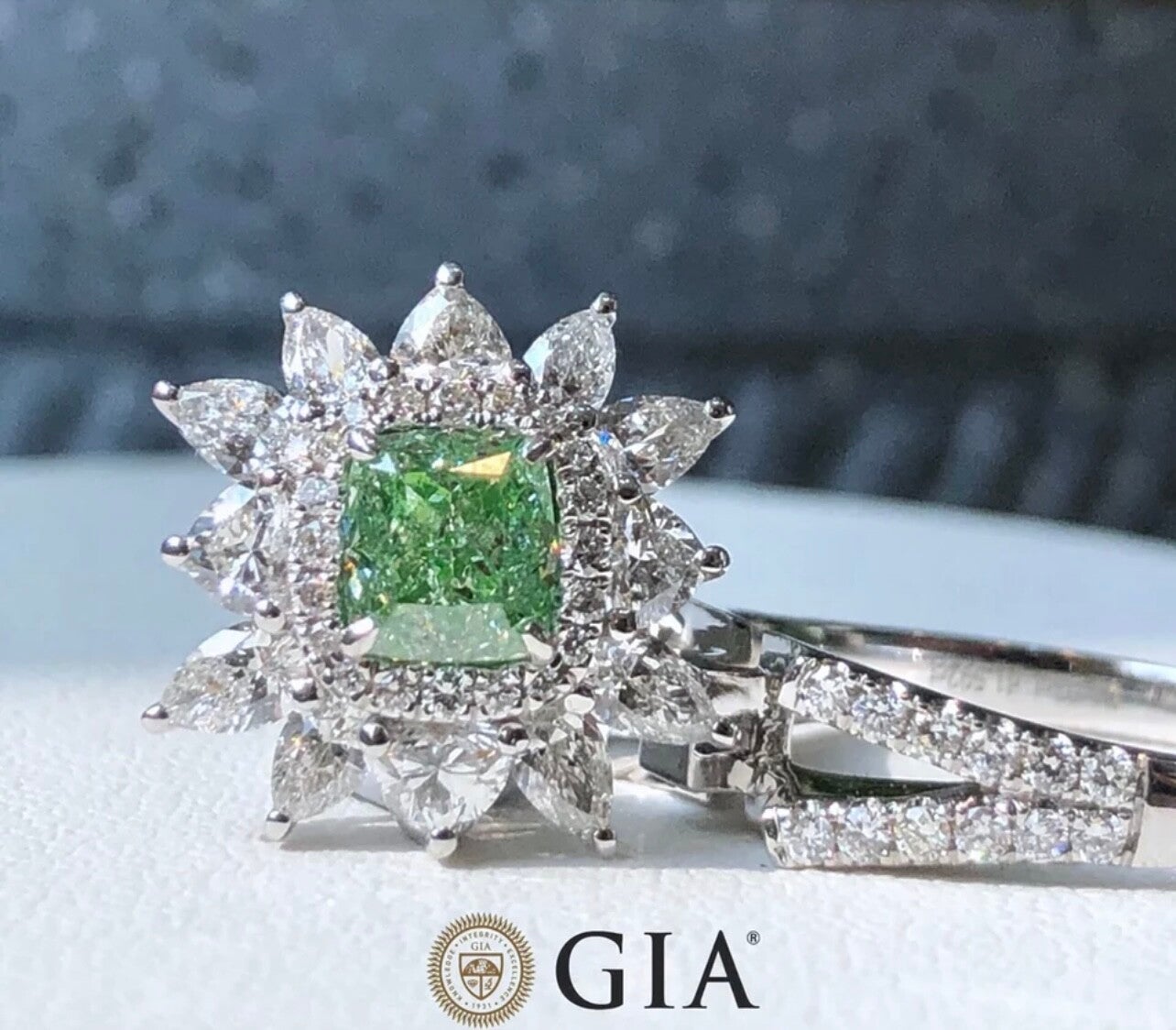 Rare Investment Grade Diamond Five Carat Solitaire Fancy Vivid Green Princess Cut Flawless Clarity GIA Dossier $6,000,000 USD $9,000,000 AUD
