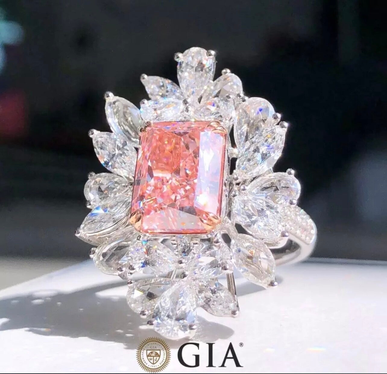 All Diamonds set on Ring Has GIA Certificate.